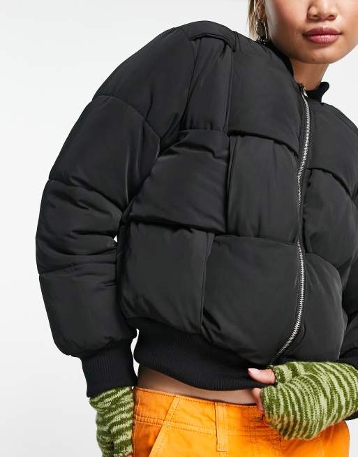 COLLUSION quilted weaved matte puffer jacket in black ASOS