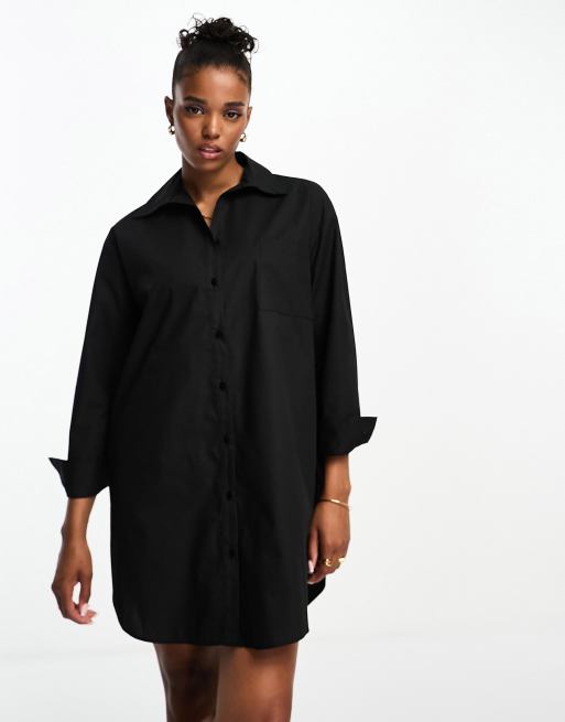 ASOS DESIGN double cloth oversized mini shirt dress in black ASOS