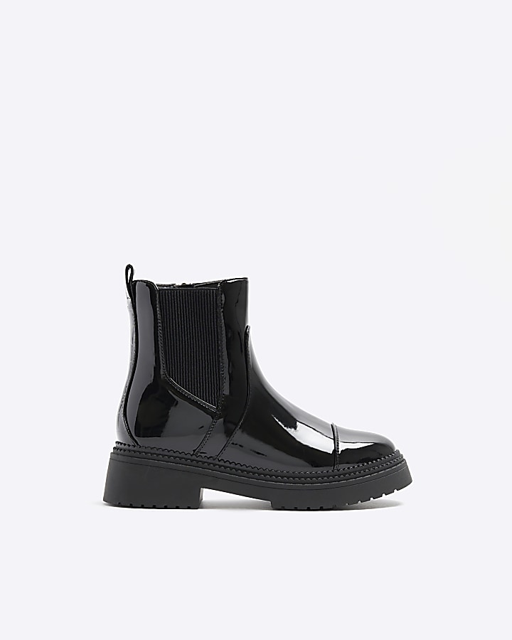 Black Patent Chelsea Chunky Sole Ankle Boots PrettyLittleThing