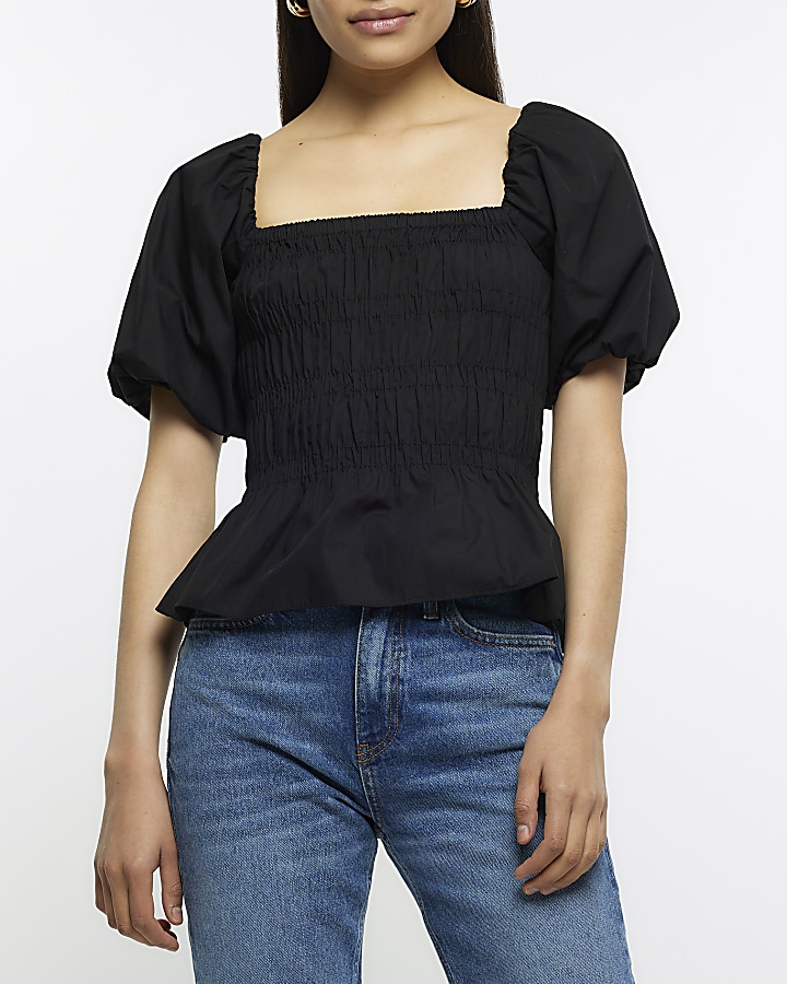 Black shirred sales bardot top