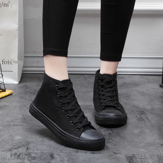 Fashion High Cut Sneakers Women s Rubber Shoes black Shopee