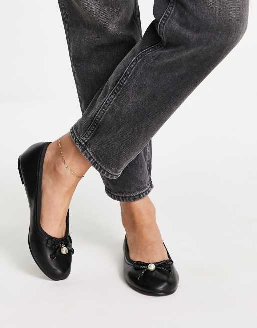 River Island Wide Fit bow front ballerina shoe in black