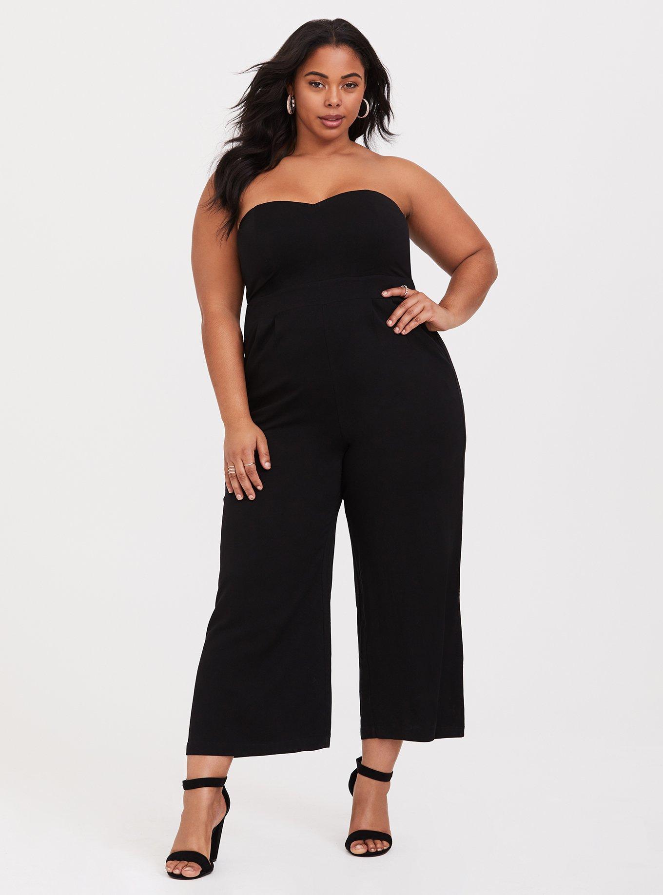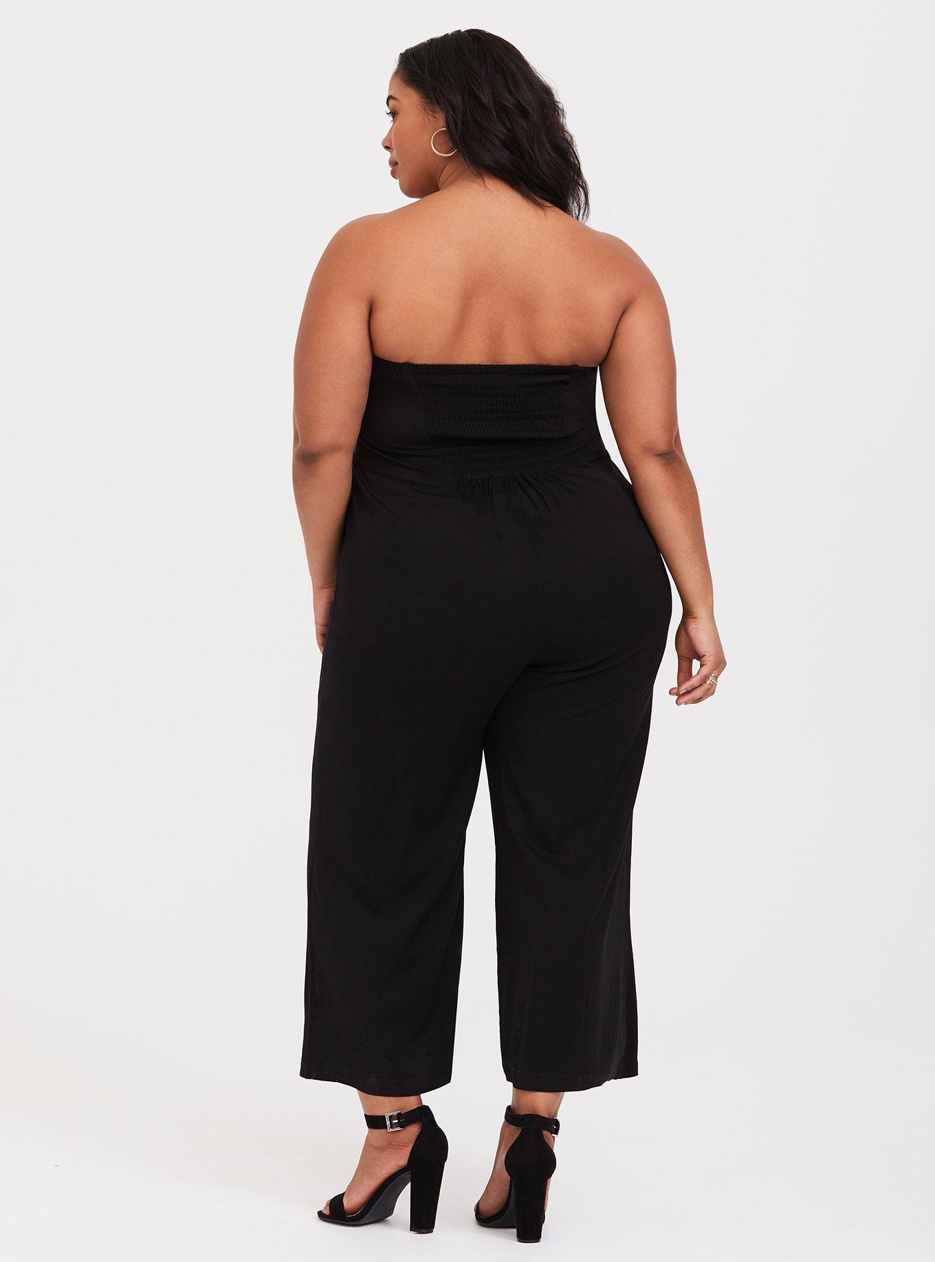 Black strapless jumpsuit sales plus size, Plus Size Black Challis Strapless Jumpsuit Torrid sales