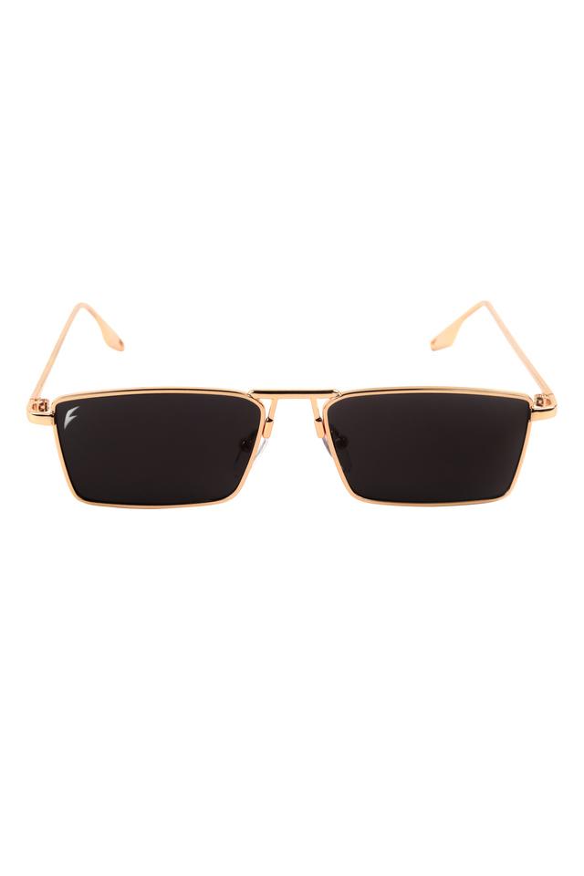 Gold Frame Black Lens UV Protected Fashion Square Sunglasses