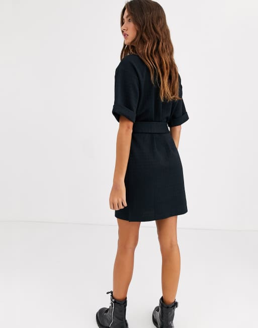 Black t shirt sales dress with belt, Bershka t shirt dress with belt detail in black sales