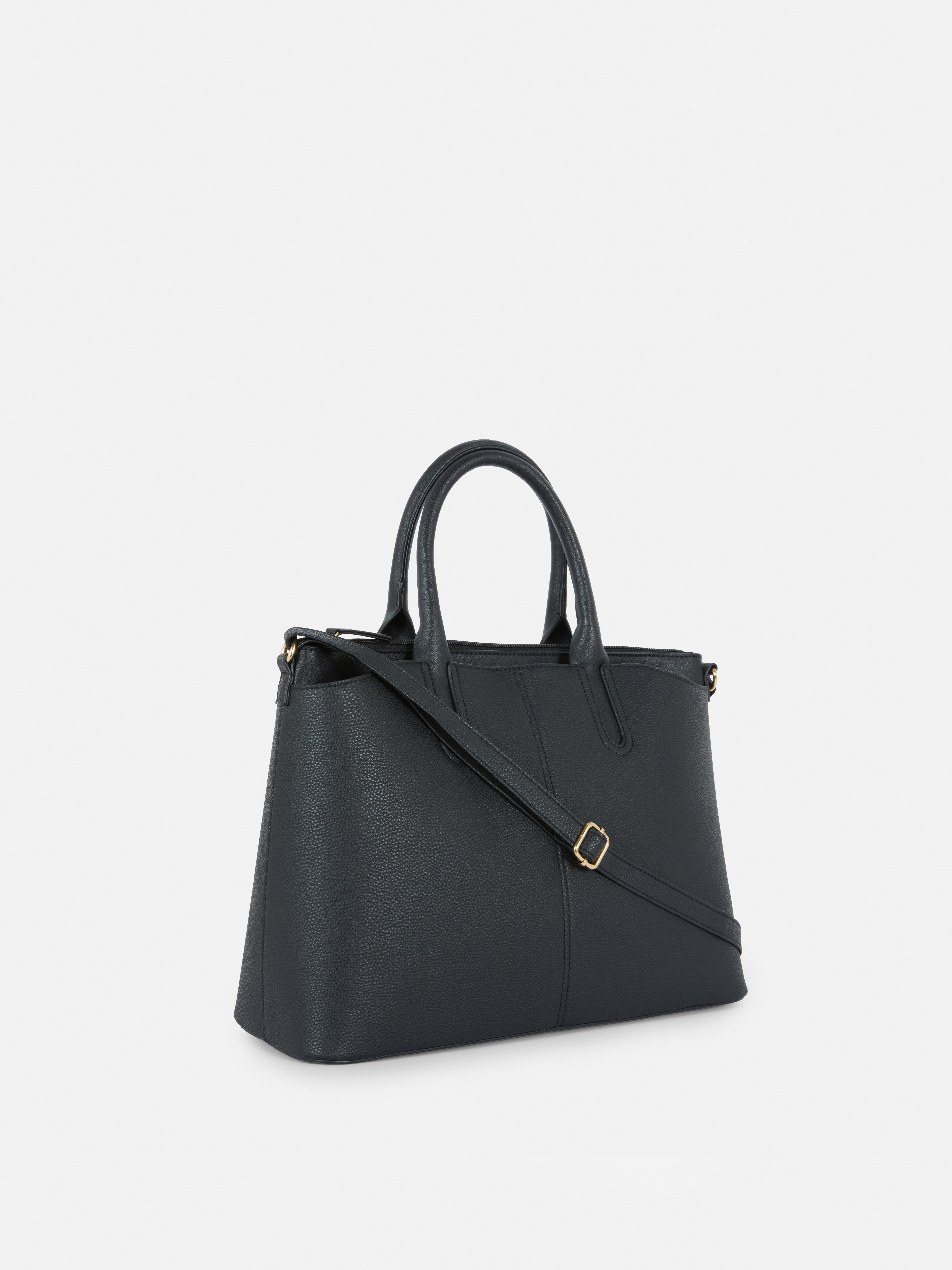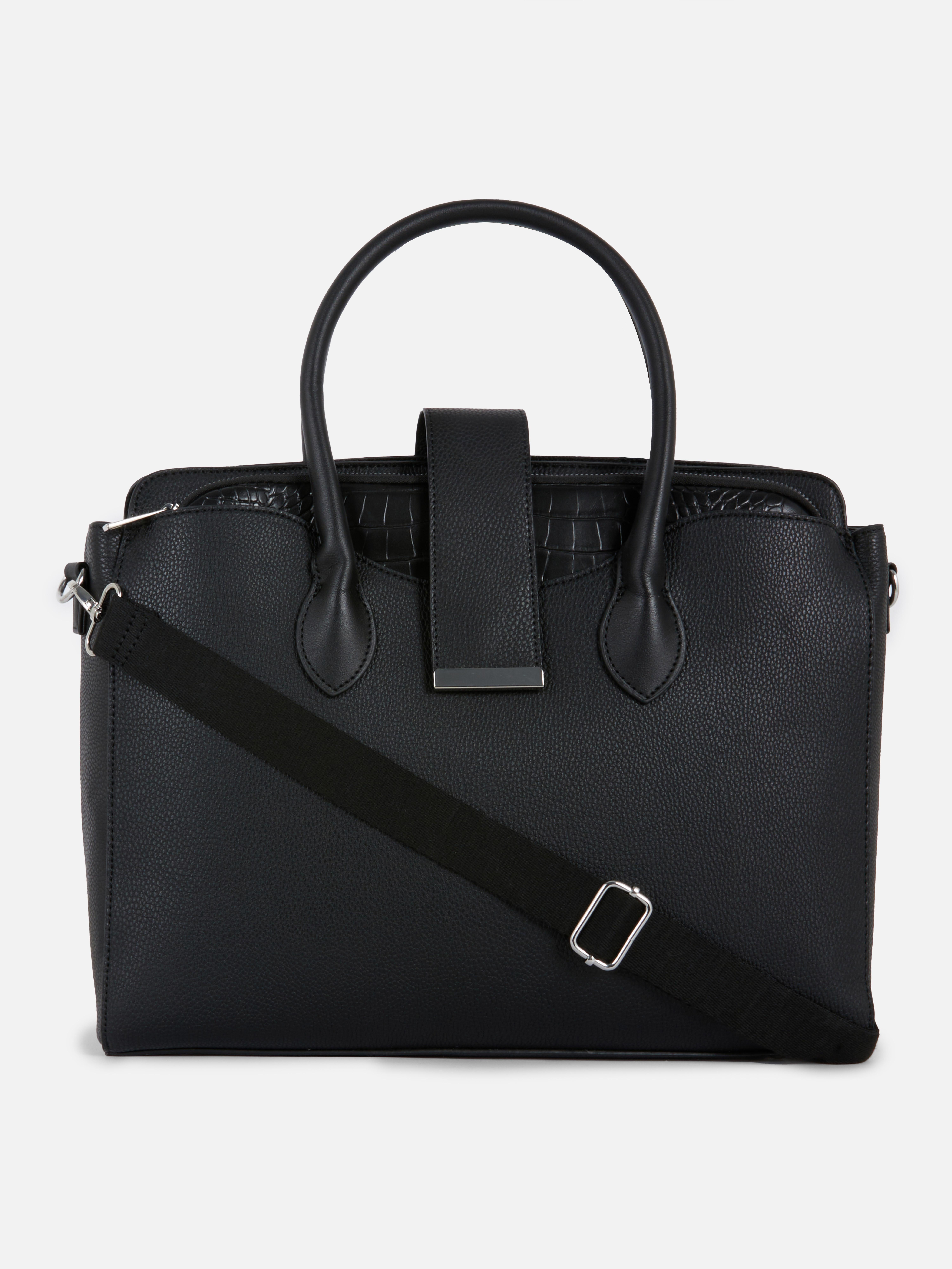 Womens Black Faux Leather Detachable Pouch Tote Bag Primark