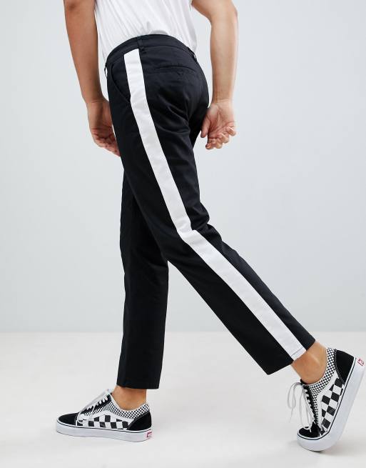 ASOS DESIGN Slim Cropped Trousers With Side Stripe In Black