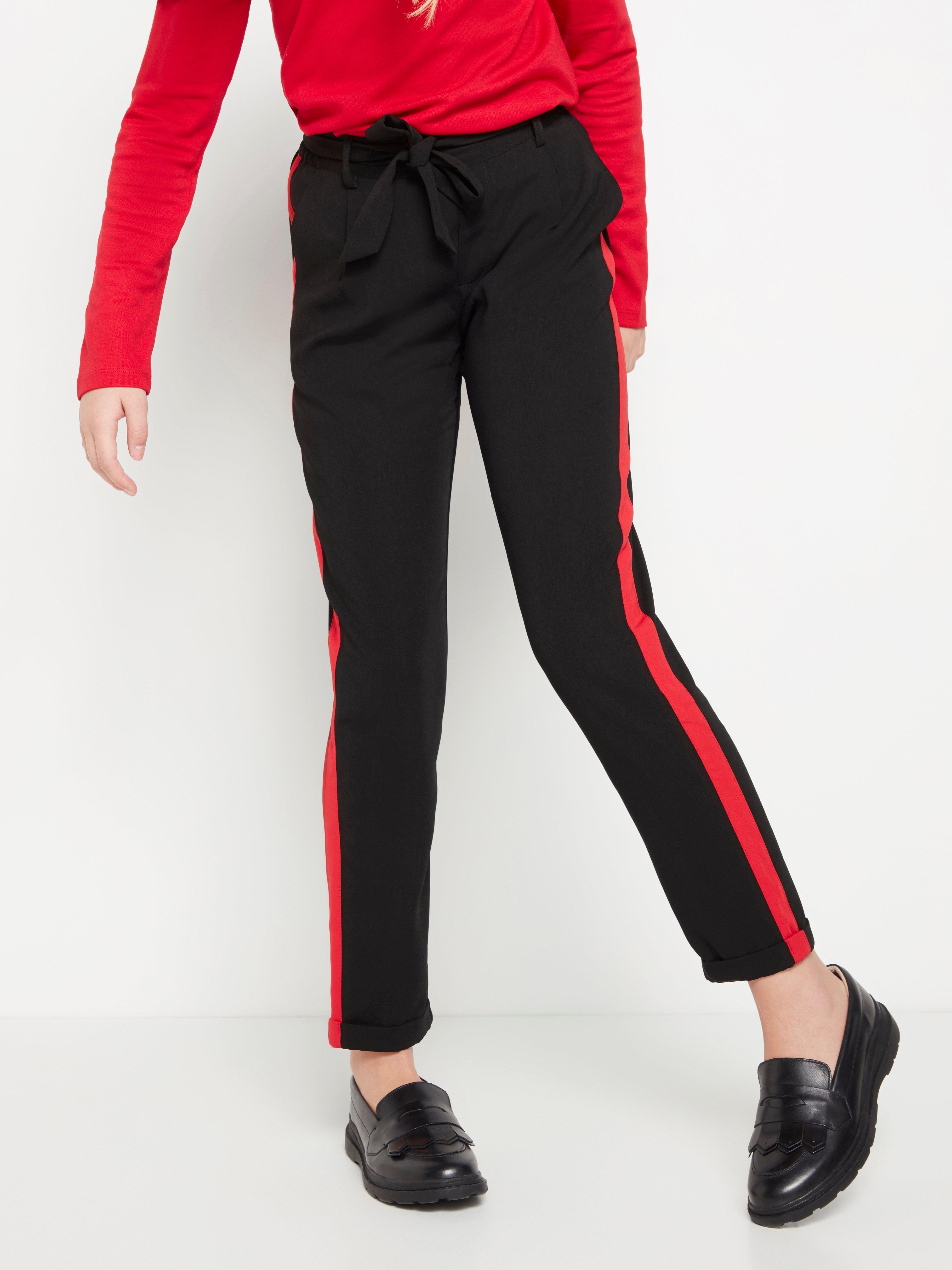 Black trousers with sales red stripe