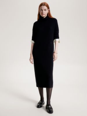 Black wool sales jumper dress, Wool Cashmere Relaxed Midi Jumper Dress Black Tommy Hilfiger sales