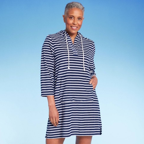 Blue and white sales striped beach cover up, Women s Blue and Coral Stripe Beach Cover Up sales